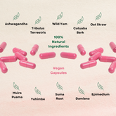 Ashwagandha · Muira Puama · Catuaba Bark · Damiana · Tribulus Terrestris · Suma Root · Yohimbe · Wild Yam · Oat Straw · Epimedium